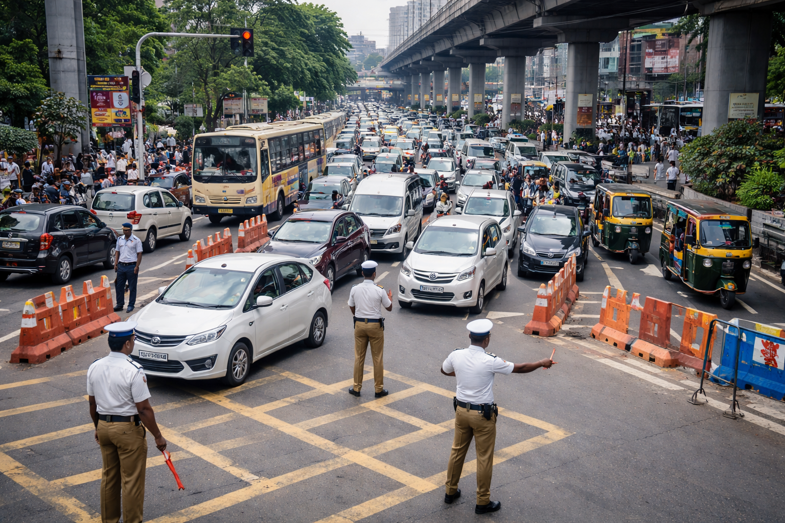വർദ്ധിച്ചുവരുന്ന ഗതാഗതക്കുരുക്ക് കുറയ്ക്കുന്നതിനായി, കൊച്ചിയിലുടനീളമുള്ള പ്രധാന ജംഗ്ഷനുകളിൽ അധികൃതർ കർശനമായ ഗതാഗത നിയന്ത്രണങ്ങൾ നടപ്പിലാക്കിയിട്ടുണ്ട്. തിരക്കേറിയ സമയങ്ങളിൽ വാഹനങ്ങളുടെ ഒഴുക്ക് മെച്ചപ്പെടുത്തുന്നതിനാണ് പുതിയ നടപടികൾ ശ്രദ്ധ കേന്ദ്രീകരിക്കുന്നത്, പ്രത്യേകിച്ച് സെൻട്രൽ ബിസിനസ് സോണുകൾ, മെട്രോ ഇടനാഴികൾ, പ്രധാന റോഡുകൾ തുടങ്ങിയ ഉയർന്ന ജനസാന്ദ്രതയുള്ള പ്രദേശങ്ങളിൽ. ട്രാഫിക് പോലീസിനെ കൂടുതൽ വിന്യസിച്ചിട്ടുണ്ട്, കൂടാതെ സിസിടിവി ക്യാമറകൾ വഴിയുള്ള അധിക നിരീക്ഷണവും ഏർപ്പെടുത്തിയിട്ടുണ്ട്.