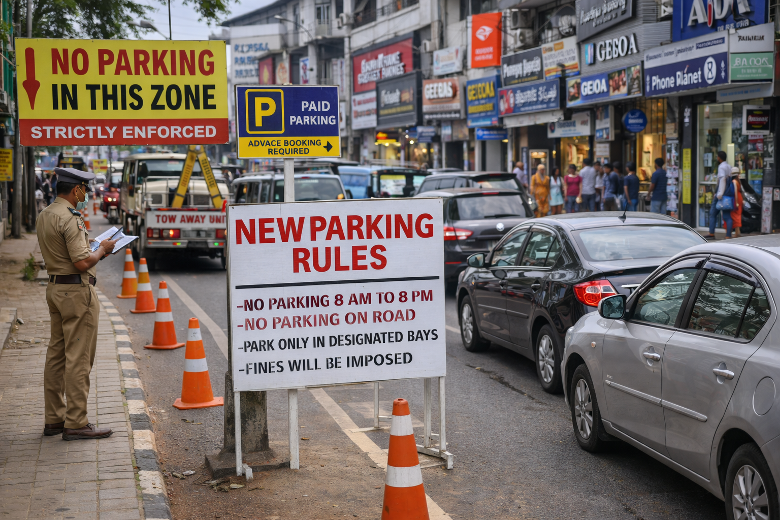 റോഡിലെ തിരക്ക് കുറയ്ക്കുന്നതിനും ഗതാഗതം മെച്ചപ്പെടുത്തുന്നതിനുമായി കൊച്ചിയിലെ പ്രധാന വാണിജ്യ മേഖലകളിൽ പുതിയ പാർക്കിംഗ് നിയന്ത്രണങ്ങൾ ഏർപ്പെടുത്തിയിട്ടുണ്ട്. പരിമിതമായ പാർക്കിംഗ് സമയം, നിയുക്ത പാർക്കിംഗ് ബേകൾ, അനധികൃത റോഡരികിലെ പാർക്കിംഗിനെതിരെ കർശനമായ നടപടികൾ എന്നിവ ചട്ടങ്ങളിൽ ഉൾപ്പെടുന്നു. വർദ്ധിച്ചുവരുന്ന വാഹനങ്ങളുടെ എണ്ണവും റോഡിലെ പരിമിതമായ സ്ഥലവും കാരണം നടപടികൾ ആവശ്യമാണെന്ന് ഉദ്യോഗസ്ഥർ പറഞ്ഞു.