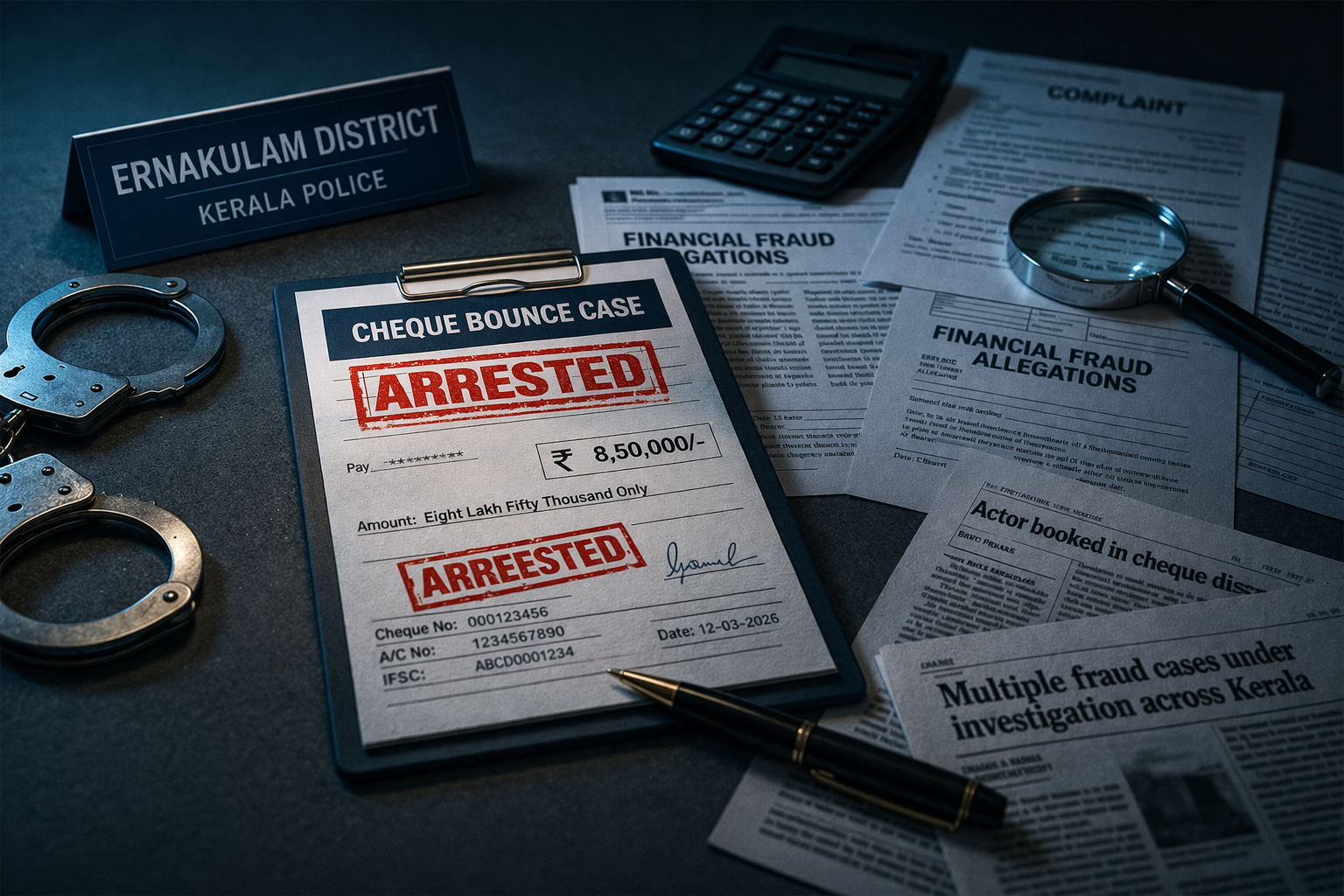 An actor has been arrested in Ernakulam in connection with a cheque bounce case, with police linking him to multiple financial fraud allegations across the state. The arrest follows a series of complaints filed by individuals who claimed to have been financially deceived through bounced cheques and unfulfilled monetary commitments.