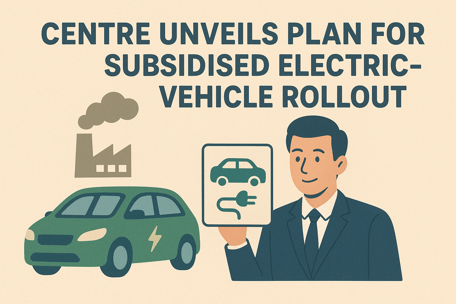 The Central Government has announced an ambitious plan to accelerate the nationwide adoption of electric vehicles (EVs) through a new subsidised rollout programme aimed at reducing urban air pollution and lowering the country’s dependence on fossil fuels. The initiative includes financial incentives for buyers, tax rebates, and special subsidies for manufacturers to scale up domestic EV production. The programme also prioritises the deployment of affordable electric two-wheelers and three-wheelers, which form a major share of India’s urban transport system.