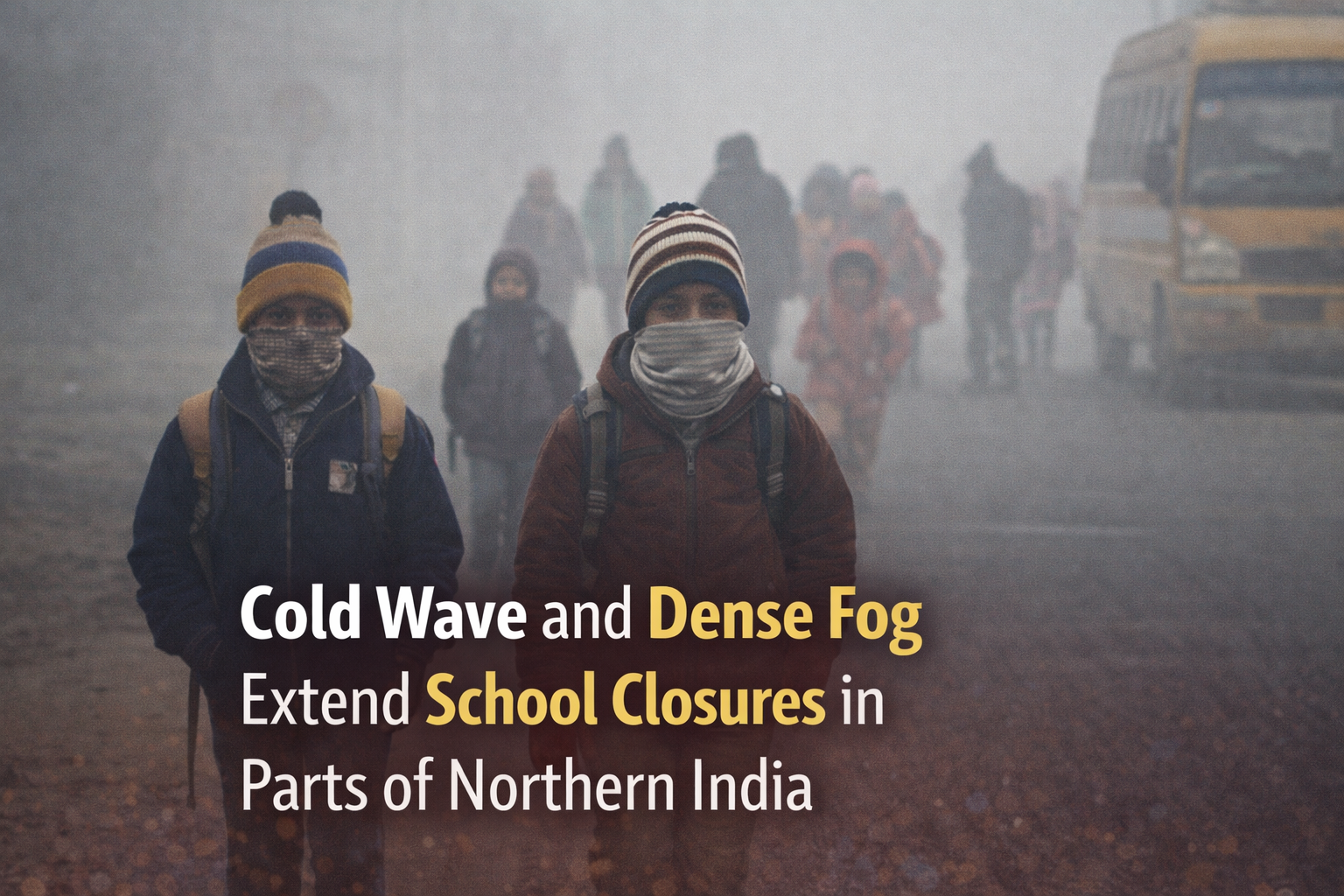 A prolonged cold wave accompanied by dense fog has forced authorities to extend school closures across several parts of northern India, as temperatures continue to remain well below normal and visibility drops to hazardous levels. State governments and local administrations have taken precautionary measures to protect students from severe weather conditions, particularly during early morning hours.