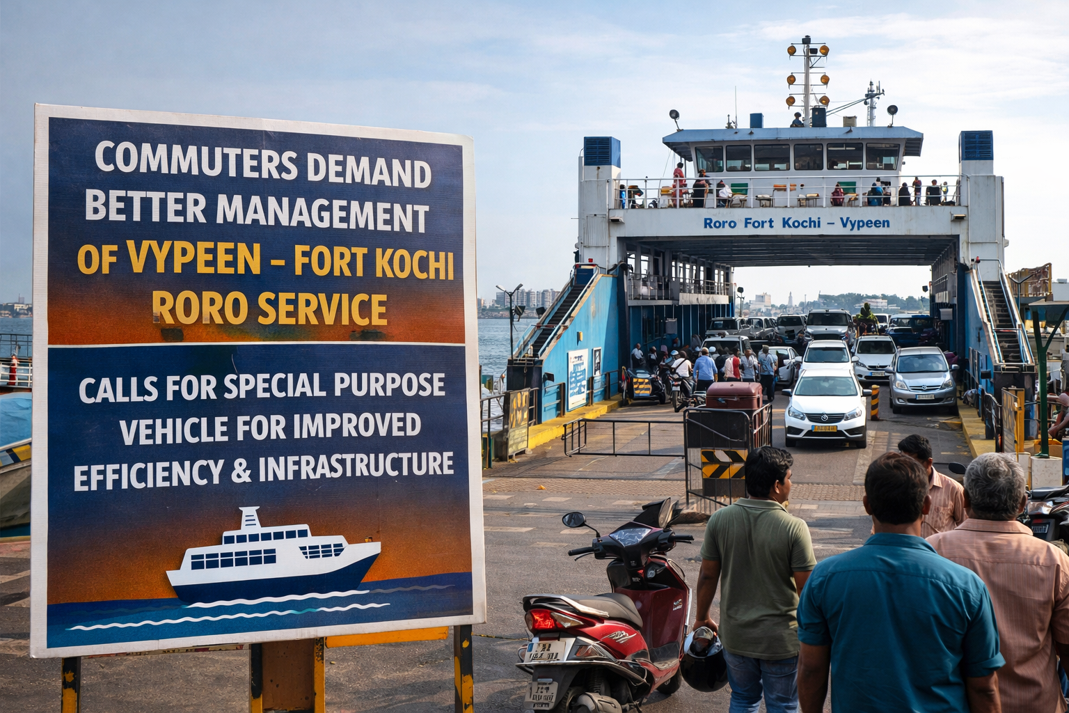 Commuters using the Vypeen–Fort Kochi RoRo (Roll-on/Roll-off) ferry service have raised concerns over operational inefficiencies and infrastructure issues, calling for improved management through a dedicated system. The service, which connects Vypeen and Fort Kochi, is a crucial transport link for daily travelers and vehicle movement across the region.