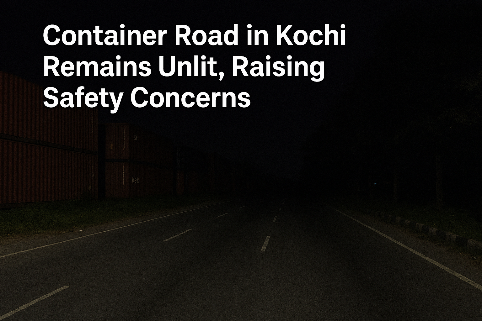 Container Road, a crucial industrial corridor in Kochi connecting the port area to major highways, continues to remain poorly lit, causing growing concern among commuters, transport operators, and nearby residents. Despite repeated complaints, large stretches of the road remain in darkness after sunset, increasing the risk of accidents and crime.