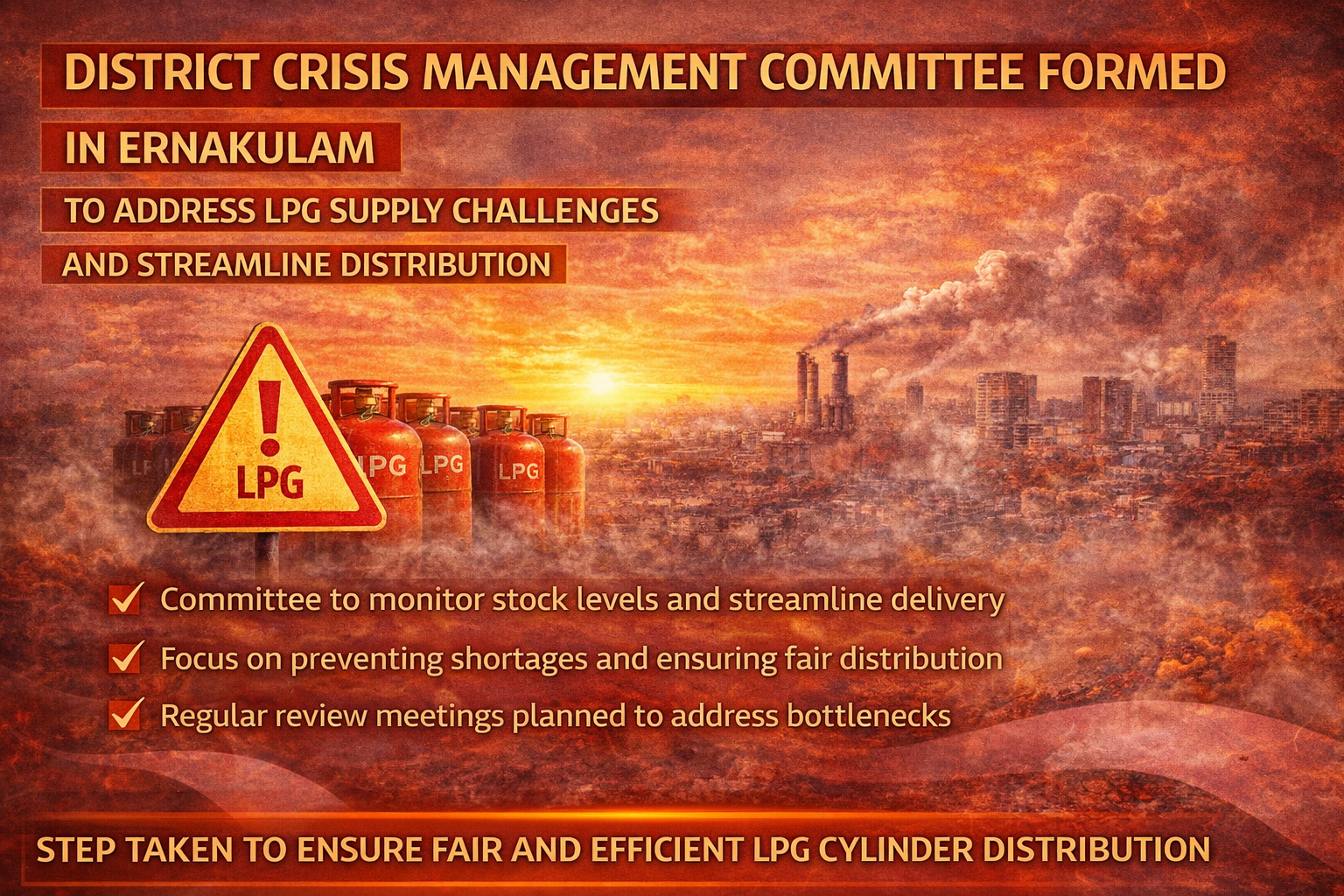 Kochi / Ernakulam district administration has formed a crisis management committee to tackle ongoing LPG supply challenges and ensure smoother distribution across the region. The move comes amid rising concerns over delays in cylinder availability and increased demand in both urban and rural areas.