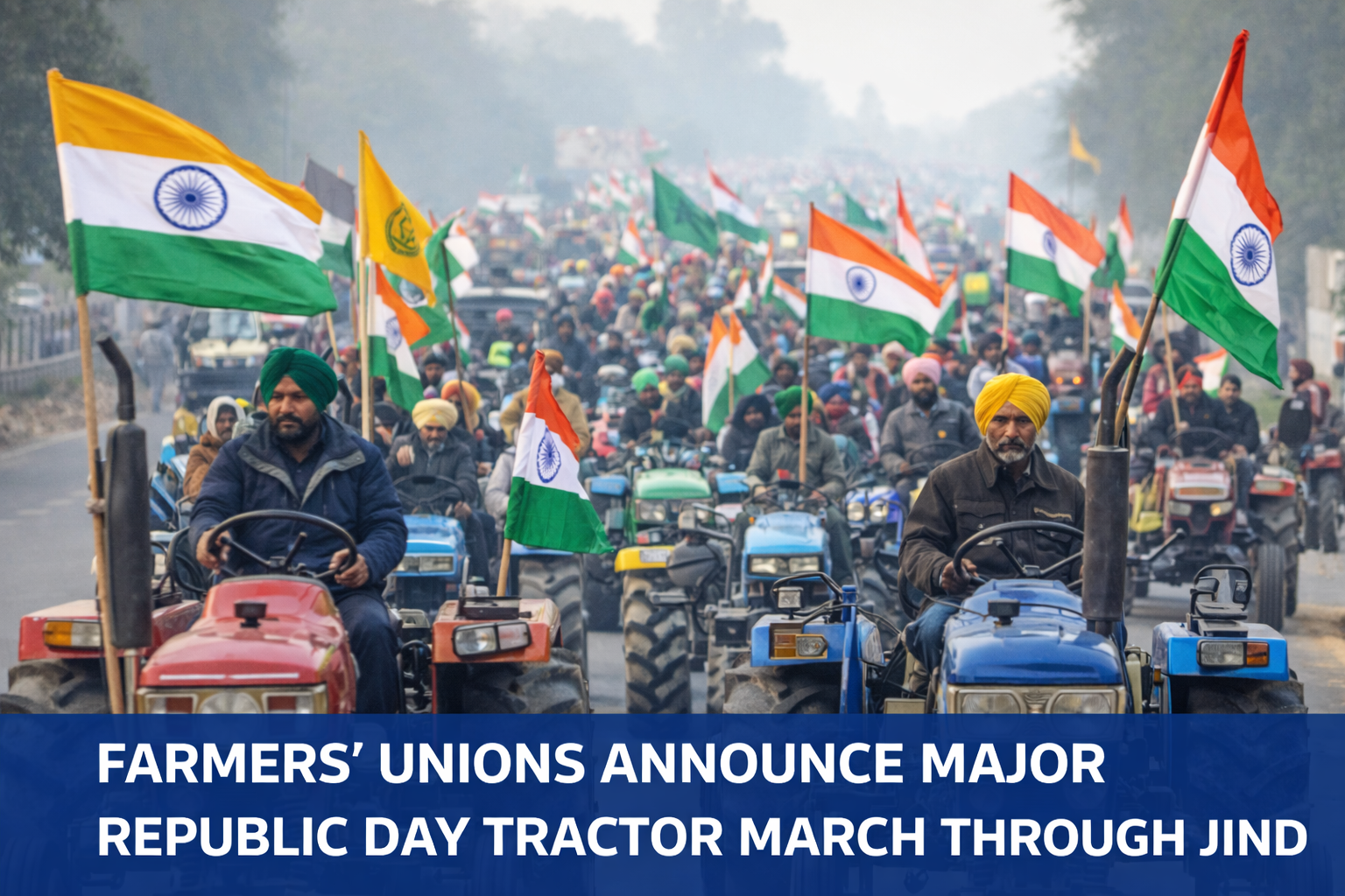 Farmers’ unions have announced a large-scale tractor march to be held on Republic Day, with the procession set to pass through Jind as part of renewed efforts to press for long-pending agricultural demands. The announcement signals a fresh phase of mobilisation by farmer groups, who say their issues remain unresolved despite earlier protests and negotiations with authorities.