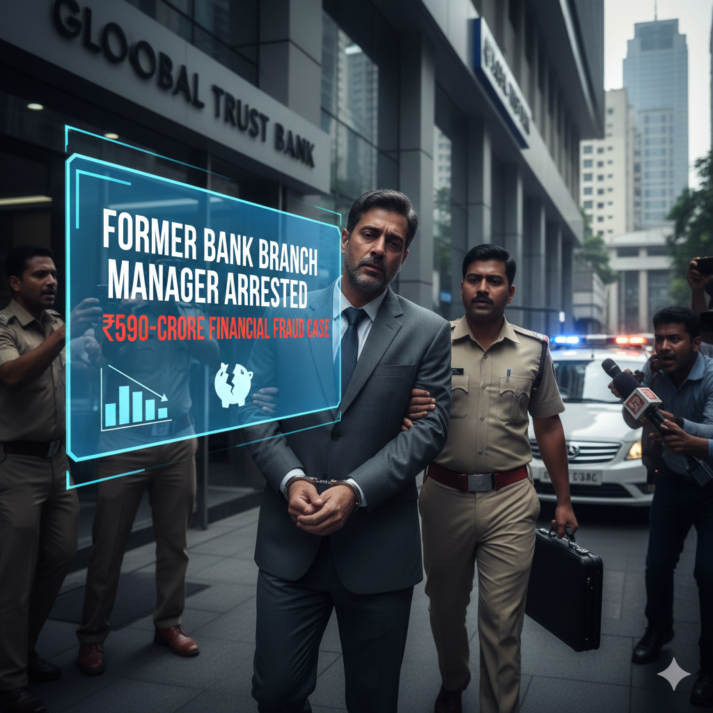 A former bank branch manager has been arrested in connection with an alleged ₹590-crore financial fraud case that has sent shockwaves through the banking sector. The arrest was made following a detailed investigation into irregular loan disbursements, forged documentation, and suspected diversion of funds over a prolonged period.