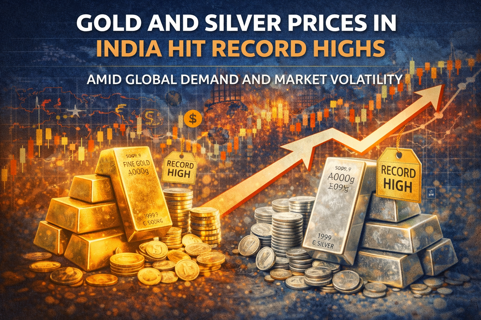 Gold and silver prices in India have surged to record levels, driven by strong global demand, currency fluctuations, and ongoing market volatility. The rally reflects heightened investor caution as uncertainties persist around global economic growth, geopolitical tensions, and monetary policy decisions by major central banks. Traditionally considered safe-haven assets, precious metals are witnessing renewed interest from both institutional and retail investors seeking stability during turbulent times.