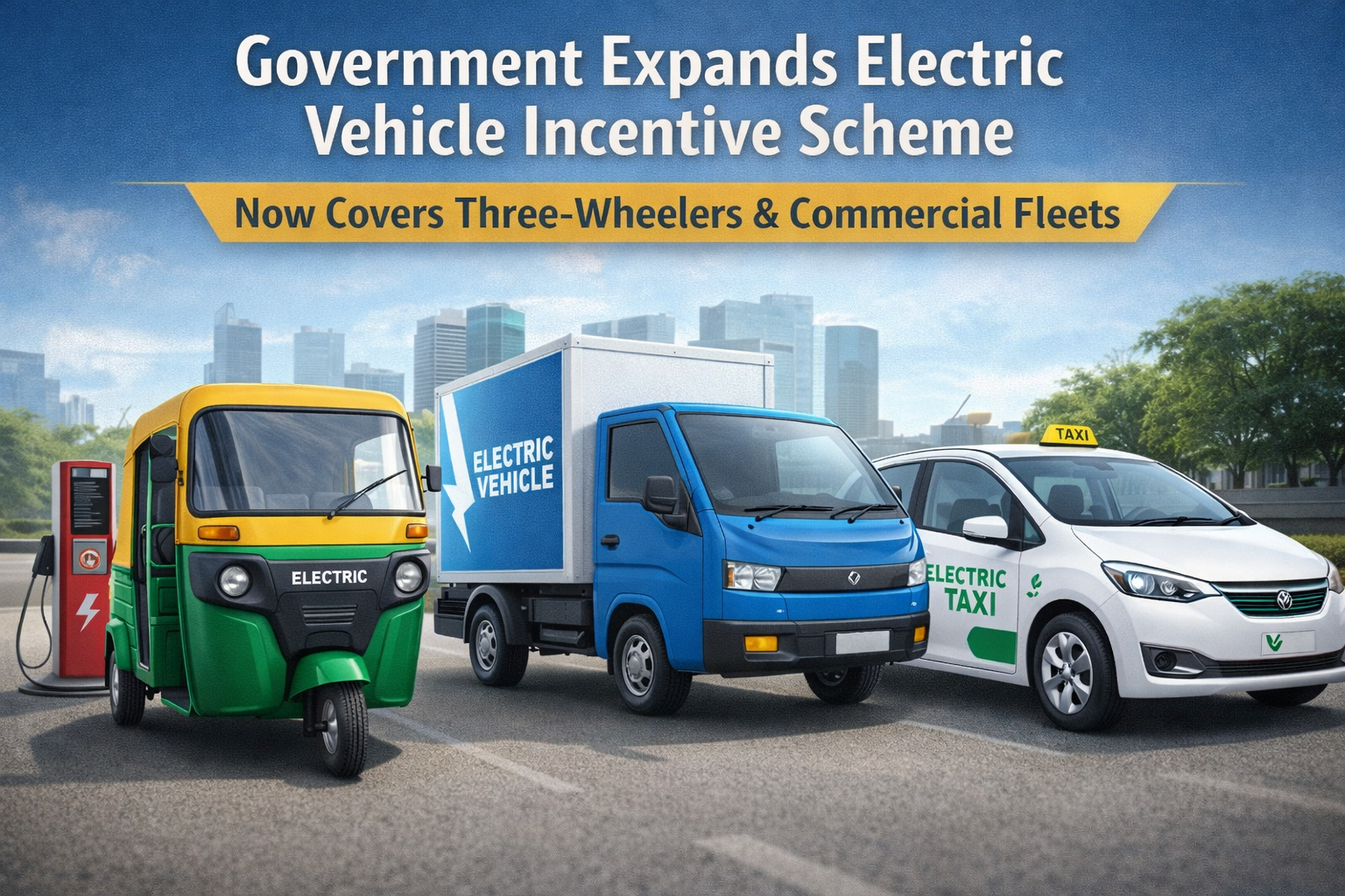 The Government of India has announced a major expansion of its electric vehicle (EV) incentive programme, extending financial benefits to electric three-wheelers and commercial fleet operators. The move aims to accelerate clean mobility adoption, reduce urban pollution, and support India’s transition toward sustainable transportation.