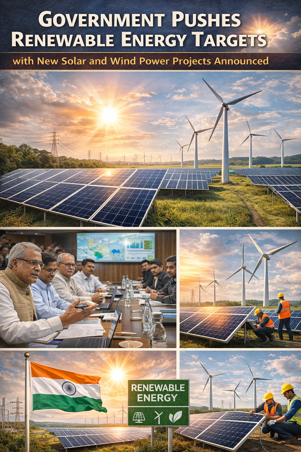 The government has intensified its efforts to achieve ambitious renewable energy targets by announcing a new wave of solar and wind power projects across the country. These initiatives are aimed at increasing clean energy capacity, reducing dependence on fossil fuels, and promoting sustainable development in line with global climate commitments.
