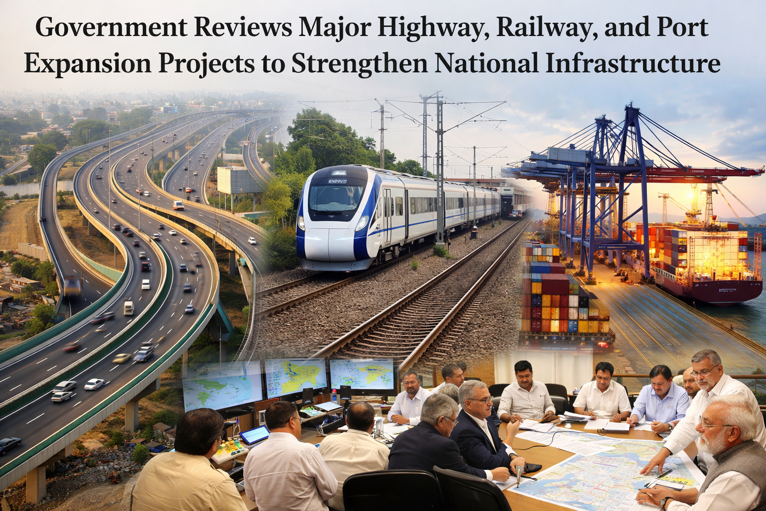 The Government of India has undertaken a comprehensive review of ongoing highway, railway, and port expansion projects aimed at accelerating national infrastructure growth and improving connectivity across regions. The high-level review focused on fast-tracking critical transport corridors, modernizing logistics networks, and ensuring timely completion of large-scale development works.