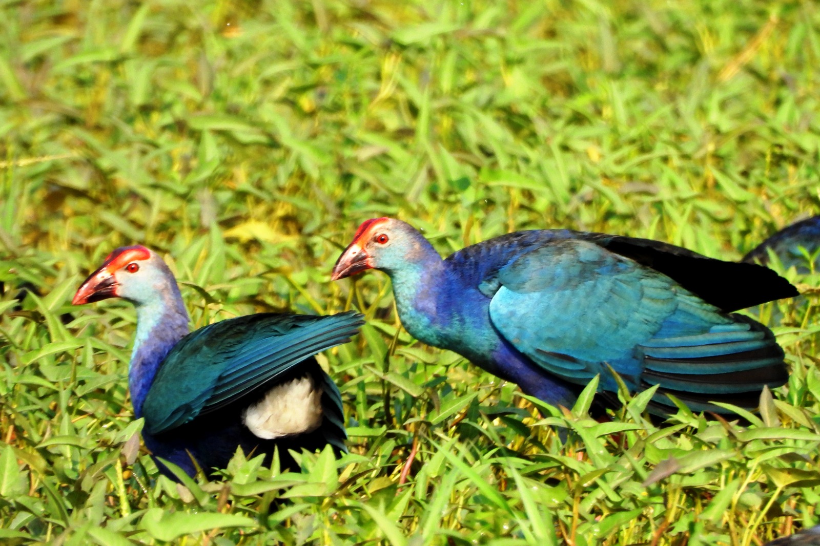 Easily recognized by its large size and vivid coloration, the bird’s most distinctive feature is the bright white patch beneath its tail, which becomes especially visible during movement. Found in marshes, wetlands, and paddy fields, the Grey-headed Swamphen is known for its graceful yet bold presence.