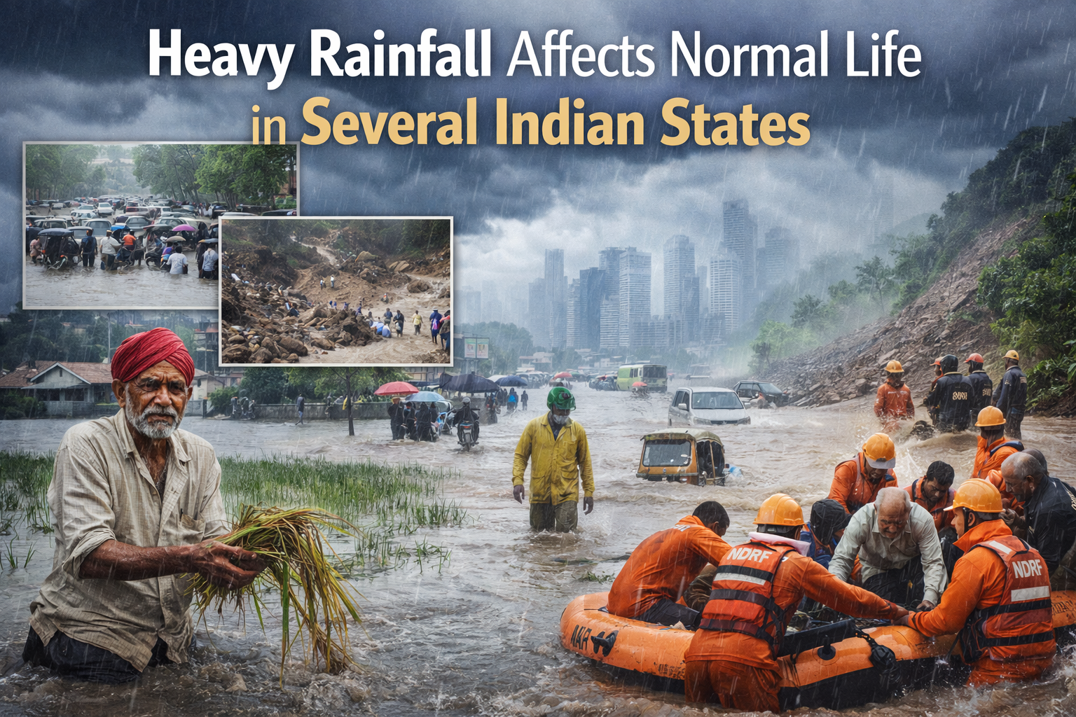 Heavy rainfall across several Indian states has significantly disrupted normal life, leading to flooding, traffic disruptions, and damage to property and infrastructure. Continuous downpours over the past few days have affected both urban and rural areas, prompting authorities to issue weather alerts and advisories for residents.
