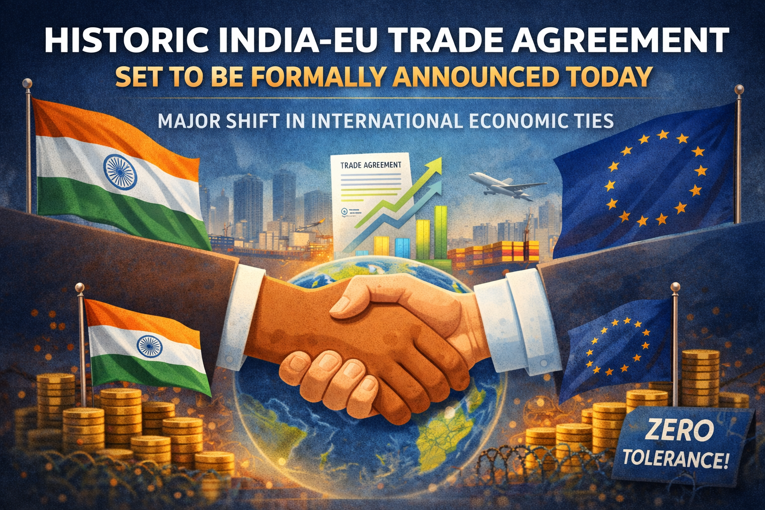 A historic India–European Union trade agreement is expected to be formally announced today, marking a significant milestone in international economic relations and signaling a new phase of strategic cooperation between the two major economies. The long-anticipated pact, negotiated over several years, aims to deepen trade, investment, and supply-chain collaboration at a time of global economic uncertainty.