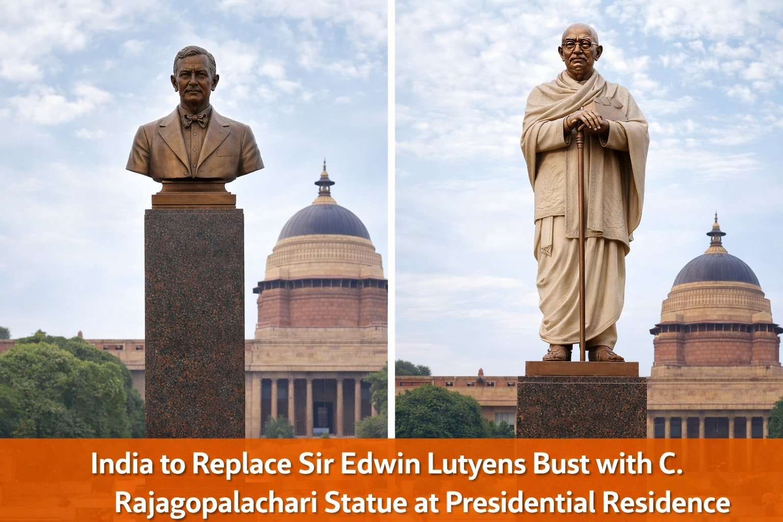 In a symbolic move toward reshaping national heritage narratives, the Government of India has announced that the bust of British architect Sir Edwin Lutyens at the Rashtrapati Bhavan—the official residence of the President of India—will be replaced with a statue of C. Rajagopalachari, the nation’s first and only Indian Governor-General after independence.