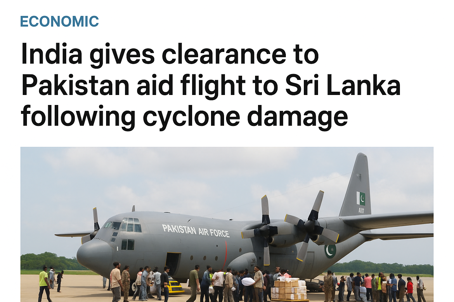 India has granted clearance for a special aid flight from Pakistan to land in Sri Lanka, marking a rare moment of regional cooperation following the severe destruction caused by the recent cyclone. The humanitarian flight, carrying essential relief materials such as food supplies, medical kits, tents, and emergency equipment, was approved as part of India’s ongoing support to Sri Lanka during the crisis.