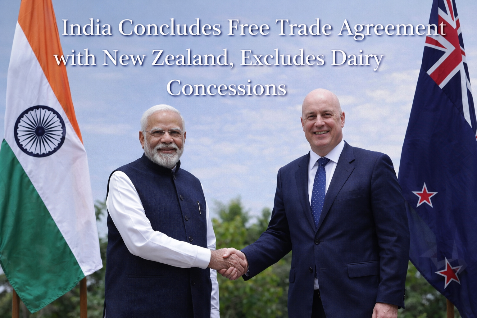 India has concluded a free trade agreement (FTA) with New Zealand after extended rounds of negotiations, marking a major step forward in strengthening bilateral economic ties. The agreement is designed to expand trade in goods and services, improve market access, and encourage investment flows between the two countries. However, one of the most sensitive sectors — dairy — has been kept outside the scope of tariff concessions, reflecting India’s long-standing concerns about protecting its domestic dairy industry.