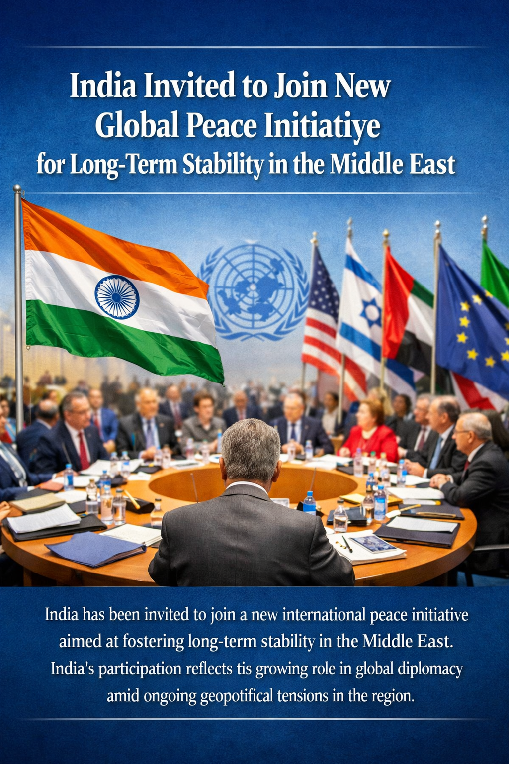 India has been formally invited to participate in a newly proposed international peace initiative aimed at promoting long-term stability and conflict resolution in the Middle East. The initiative brings together key global and regional stakeholders to address persistent geopolitical tensions, humanitarian concerns, and security challenges that continue to affect the region. India’s inclusion highlights its growing stature as a responsible global actor and a trusted diplomatic partner across diverse geopolitical blocs.