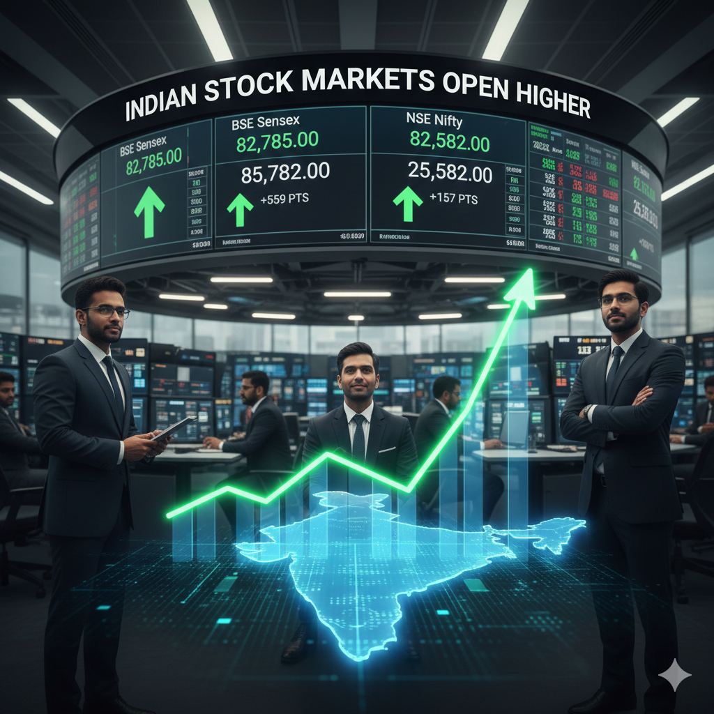 Indian equity markets opened on a positive note today, with benchmark indices trading in the green during early sessions. The BSE Sensex and the Nifty 50 registered gains at the opening bell, reflecting optimistic investor sentiment and strong global cues. Buying interest was visible across major sectors, particularly banking, information technology, auto, and energy stocks.