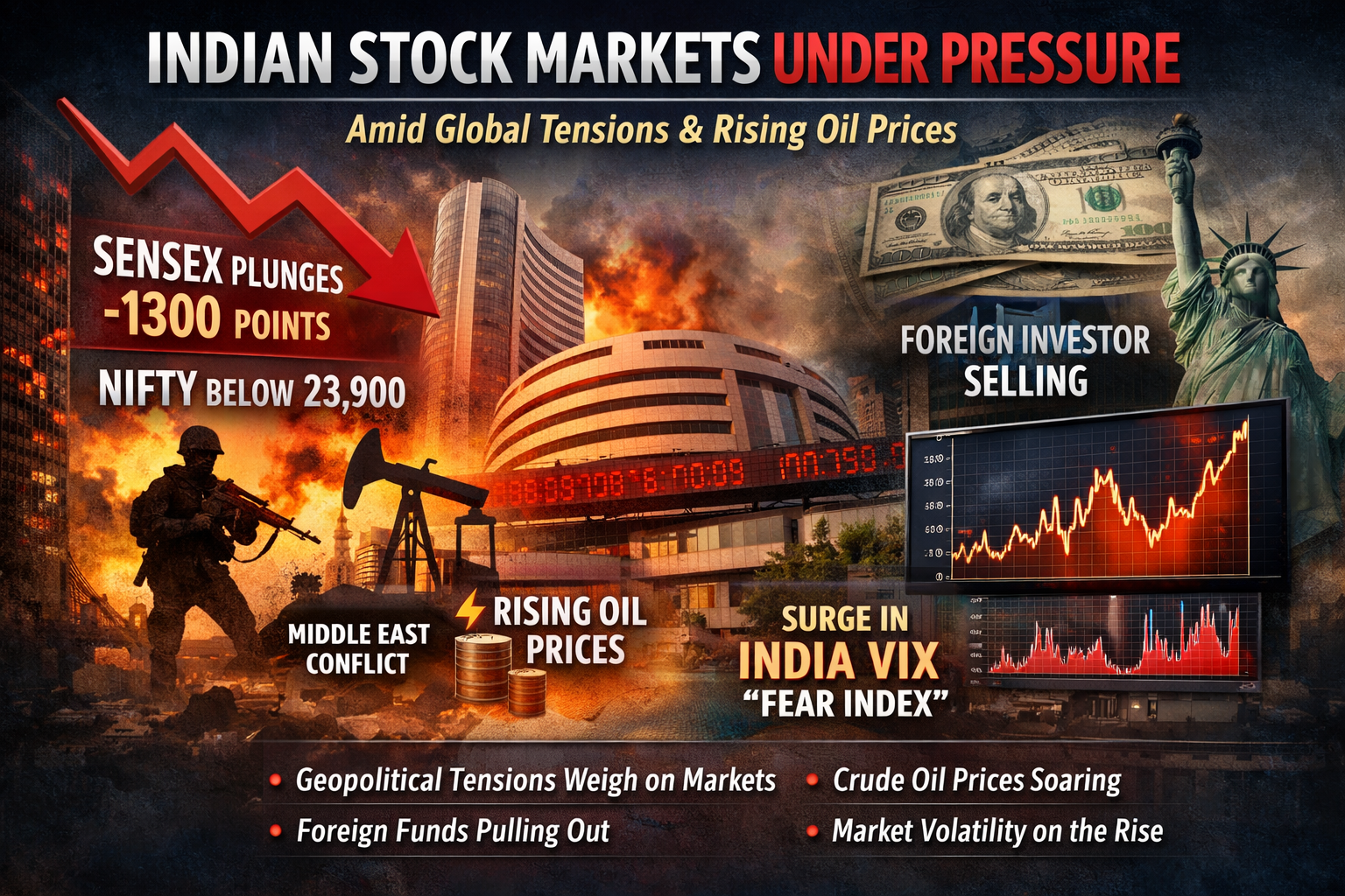 Indian stock markets remained under pressure this week as global geopolitical tensions and rising crude oil prices weakened investor confidence. Benchmark indices BSE Sensex and Nifty 50 witnessed sharp declines during several trading sessions, reflecting cautious sentiment among both domestic and foreign investors.