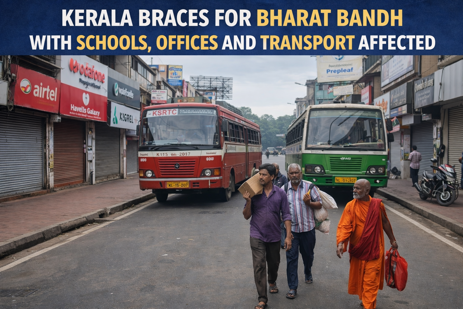 Kerala is preparing for a Bharat Bandh on February 12, 2026, with normal life expected to be significantly disrupted across the state as joint trade unions and allied organisations mobilise in support of the nationwide strike called to protest central government labour policies and other demands. The bandh, backed by major federations including INTUC, CITU and AITUC, is likely to bring government offices, banks, educational institutions and commercial establishments to a standstill for 24 hours.