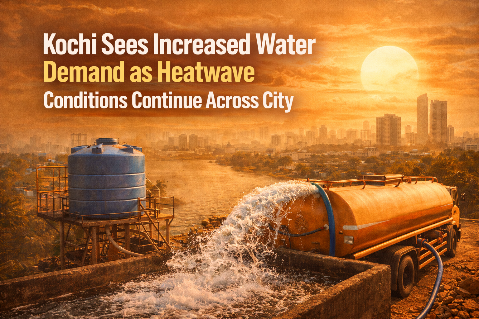 The city of Kochi is witnessing a sharp rise in water demand as prolonged heatwave conditions continue to affect daily life. With temperatures remaining above seasonal averages and humidity levels staying high, residents are increasingly dependent on water for drinking, cooling, and household use.
