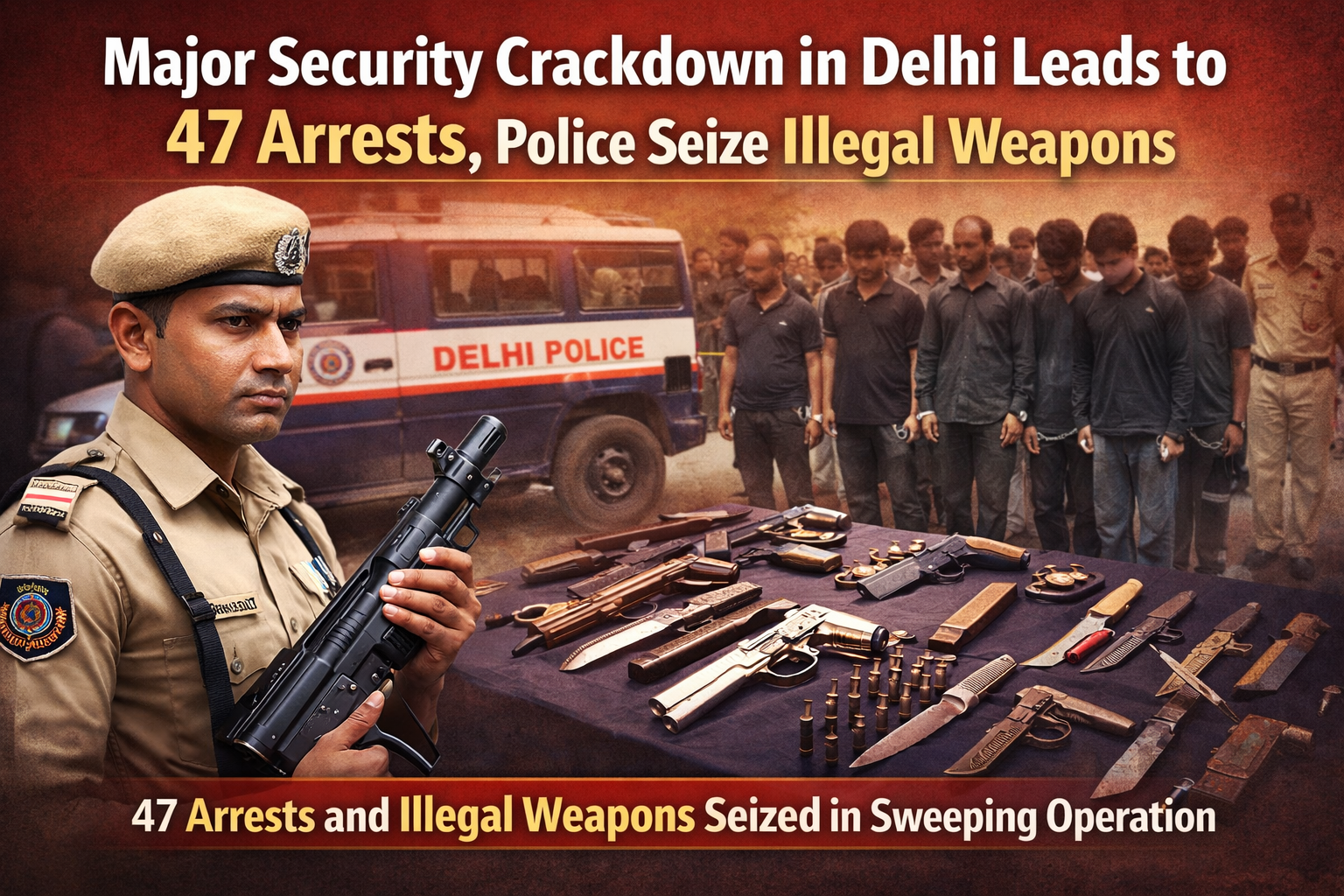 A major security operation conducted by the Delhi Police has resulted in the arrest of 47 individuals and the seizure of several illegal weapons during a large-scale crackdown targeting street crime and unlawful activities in Delhi.