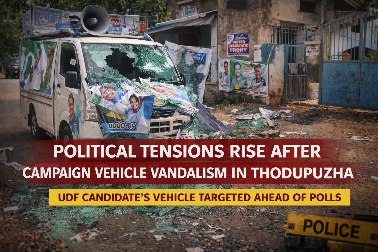 Political tensions have escalated in Thodupuzha ahead of the ongoing election process, following an incident of vandalism targeting a campaign vehicle of a candidate. The incident has intensified the already charged atmosphere in the region as campaigning enters its final phase.