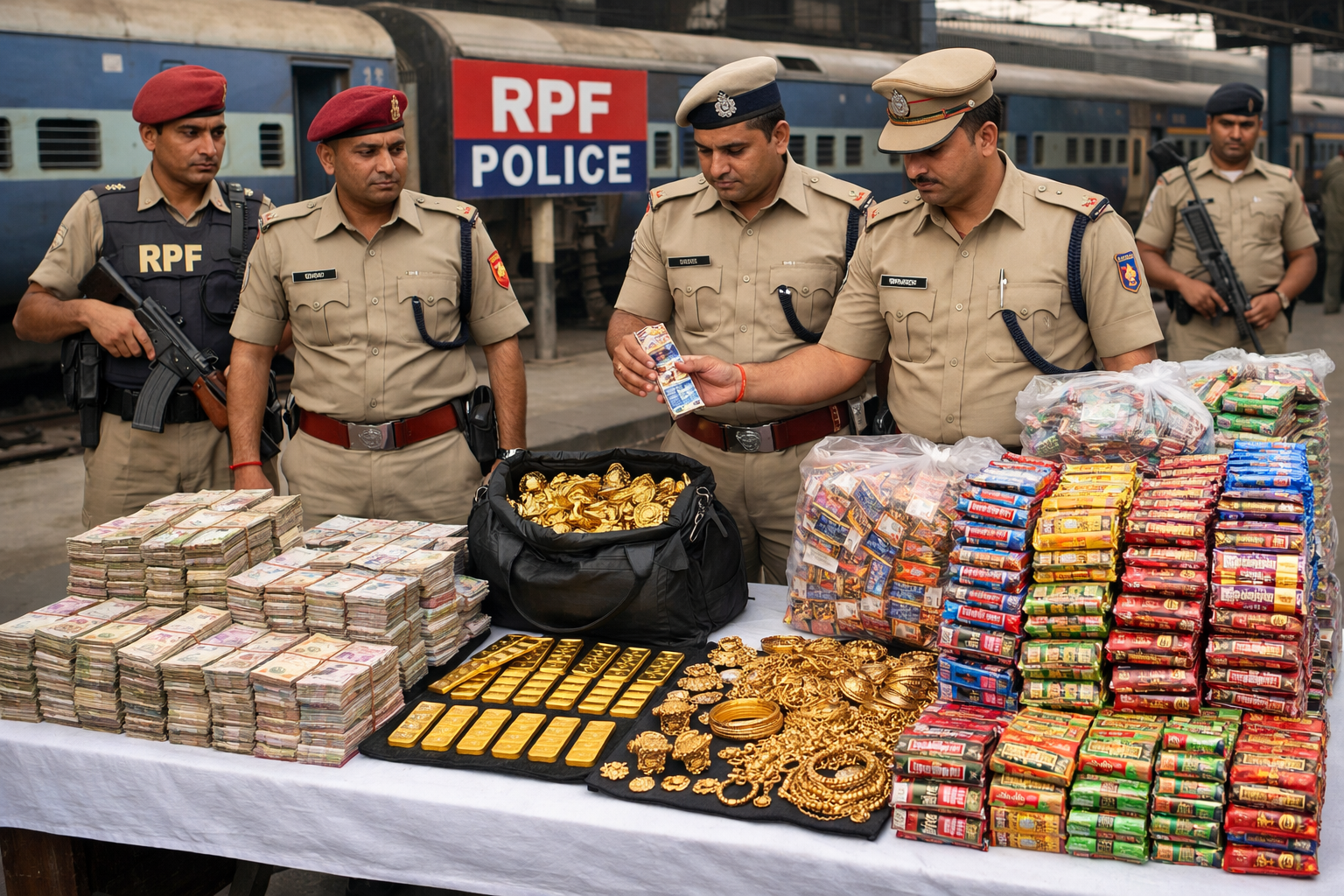 In a major enforcement drive, the Railway Protection Force (RPF) in coordination with local police carried out extensive inspections across multiple locations, leading to the seizure of large amounts of unaccounted cash, gold, and banned tobacco products, including gutka.
