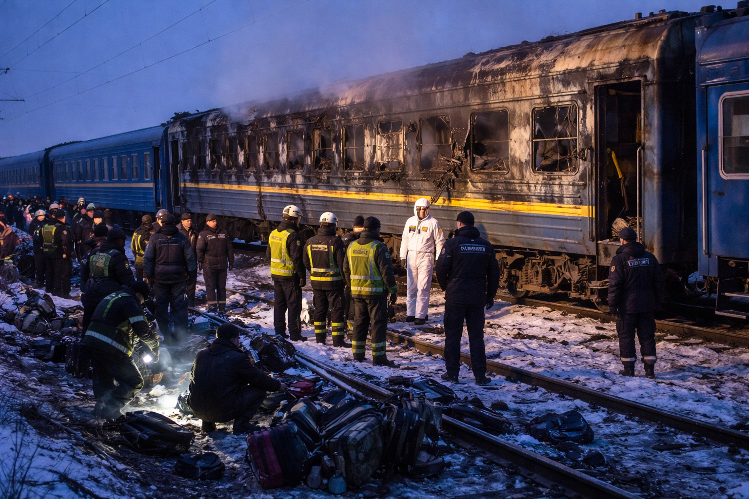 Photographs from the site showed burned carriages beside the snowy tracks as investigators and emergency responders continued their work. Despite the attack, railway officials pledged to maintain train services and improve safety measures amid ongoing hostilities.