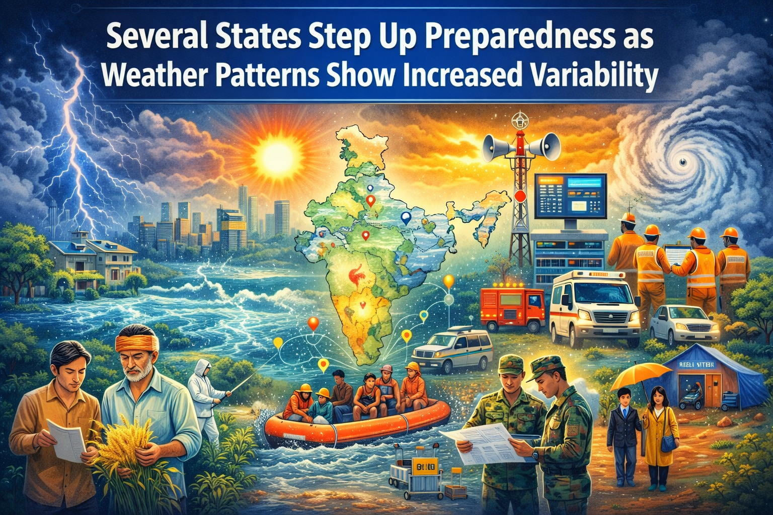 Several states across India have intensified preparedness efforts as weather patterns continue to show increased variability, posing challenges to disaster management, agriculture, and public health. Unpredictable rainfall, prolonged heatwaves, sudden cold spells, and the rising frequency of extreme weather events have prompted governments to adopt proactive and coordinated response measures.