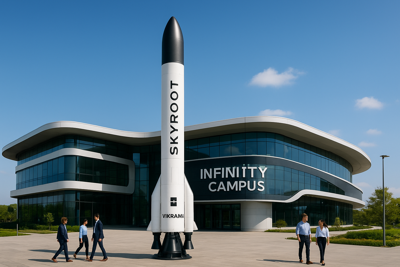 Skyroot Aerospace, one of India’s leading private space-tech startups, marked a major milestone with the inauguration of its new “Infinity Campus” and the formal unveiling of its first orbital rocket, Vikram-I. The event signals a significant boost for India’s private space ecosystem, which has been expanding rapidly since the opening up of the sector.