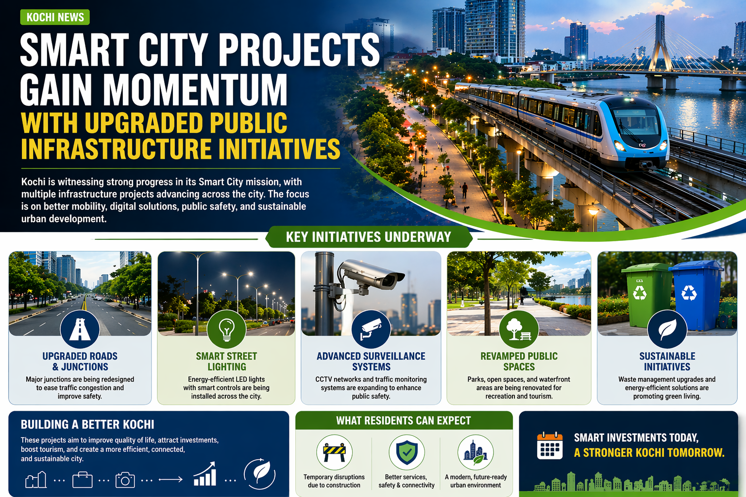 Officials have stated that these developments are part of a long-term vision to position Kochi as a modern, technology-driven urban hub. The ongoing projects are expected to not only improve quality of life but also attract investments and boost tourism in the region.