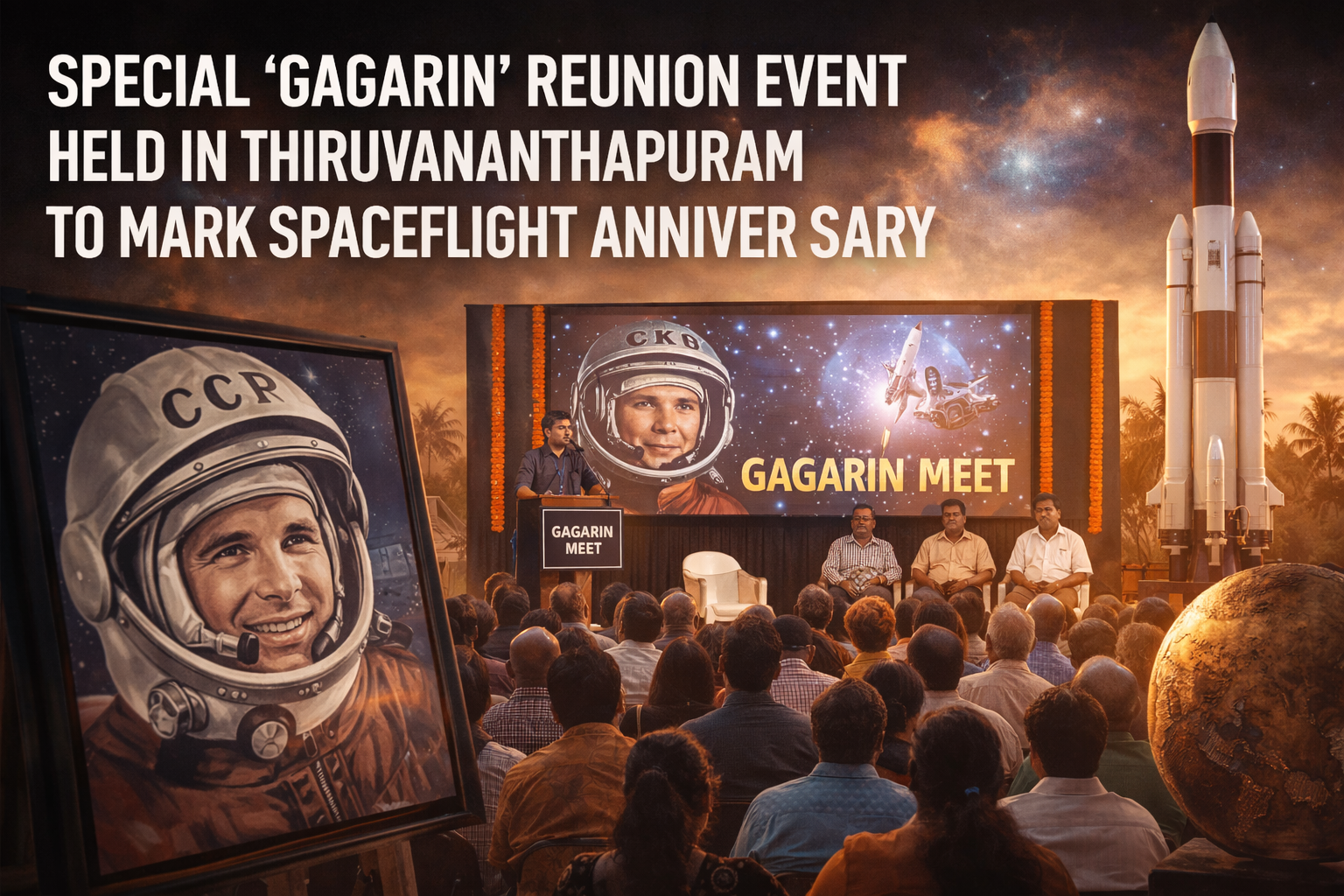 A unique reunion event titled the ‘Gagarin Meet’ was held in Thiruvananthapuram to commemorate the anniversary of the historic first human spaceflight by Soviet cosmonaut Yuri Gagarin. The event brought together a special group of individuals popularly known as Kerala’s “Gagarins,” who share a rare connection with the iconic space mission.