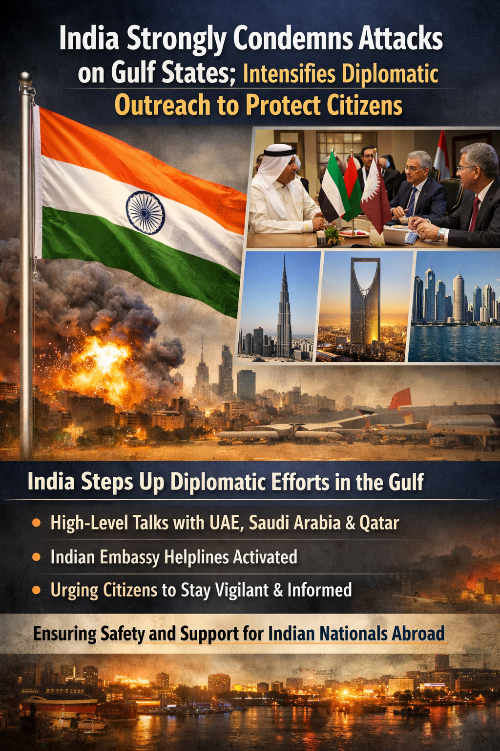 India maintains strong strategic and economic ties with Gulf nations, where millions of Indian expatriates contribute significantly to local economies as well as to India’s remittance inflows. In light of the recent events, authorities have urged Indian citizens in the region to remain vigilant, follow local security advisories, and stay connected with official channels for updates.