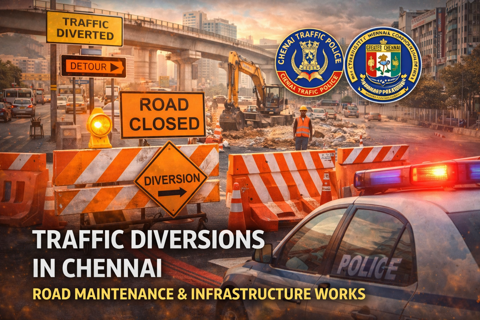 Traffic police teams from the Greater Chennai Traffic Police will be deployed at major junctions to manage vehicle movement and ensure smooth traffic flow. Authorities have also placed additional warning signs and barricades near construction zones to enhance road safety.