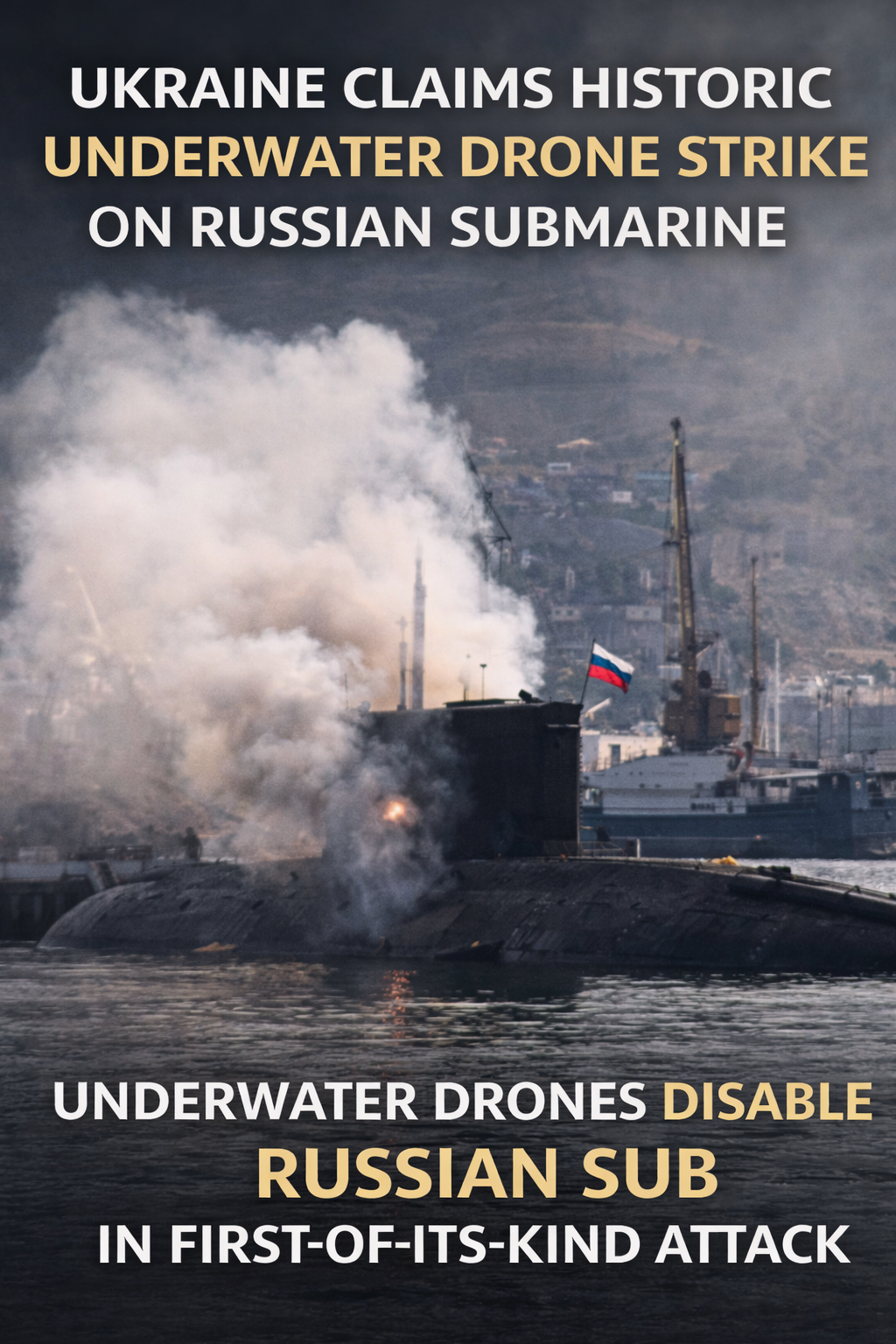 Ukraine’s Security Service (SBU) and the Ukrainian Navy have claimed responsibility for a historic attack using underwater drones to strike and critically damage a Russian submarine, marking what Kyiv says is the first such operation in maritime warfare. In a statement released on December 15, Ukrainian officials said their domestically developed “Sub Sea Baby” underwater drones successfully hit a Russian Project 636.3 Varshavyanka-class (Kilo-class) submarine docked at the Novorossiysk naval base on the Black Sea, causing an explosion that rendered the vessel inoperable. The submarine reportedly carried four Kalibr cruise missile launchers often used against Ukrainian targets.